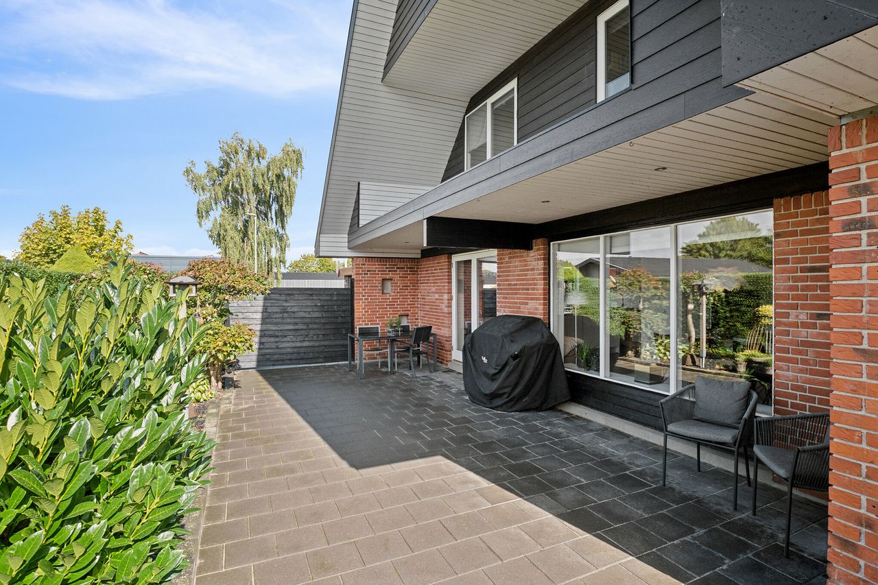 Udendørs kan du glæde dig over en stor og velholdt have med flere terrasser, hvor privatlivet er i højsædet. Her kan børnene lege frit, mens de voksne slapper af eller underholder gæsterne.