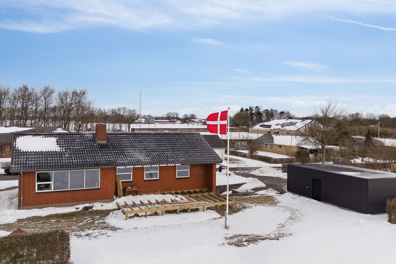 Udenfor venter en stor nyere dobbeltgarage på hele 70 kvadratmeter enhver mands drøm, som ikke kun giver rigelig plads til bilerne, men også mulighed for hobbyprojekter eller ekstra opbevaring. Haven er et kapitel for sig selv; den er velplejet og inviterer til leg samt afslapning under åben himmel. Den dejlige terrasse bliver hurtigt familiens foretrukne sted at nyde solrige dage med udsigten over den omkringliggende natur.